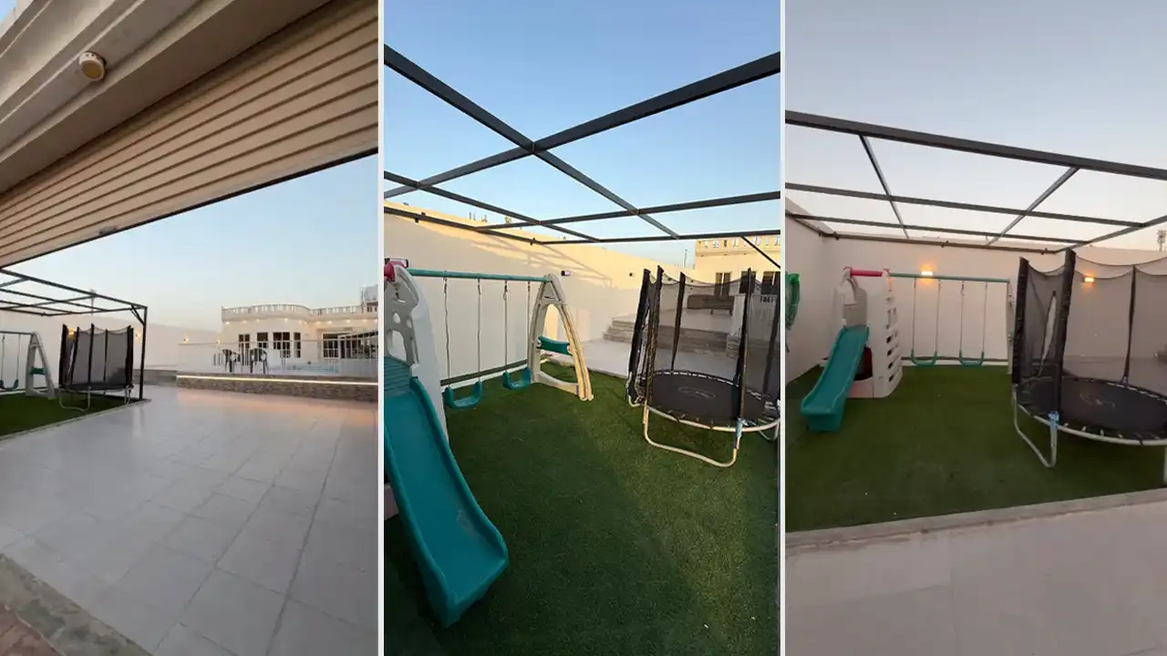 ألعاب أطفال وفناء خارجي واسع
