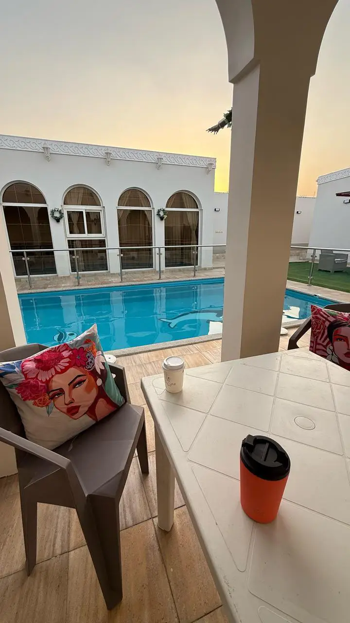 🏖️ شالية فوز Foz (4)يضم هذا الشاليه الرائع مجلسين بإطلالة جميلة على المسبح الخارجي، بتصميم مفتوح يربط بين الصالتين ليمنحك شعورًا بالاتساع والراحة. يحتوي على مسبح خارجي آمن بحاجز، و بجلسة حديقة هادئة للاستمتاع بالأجواء أمام المسبح. كما يتميز بـ جلسة أرضية بطابع شعبي دافئ ومحبب أمام المسبح، تضيف لمسة من الأصالة على تجربتك. |