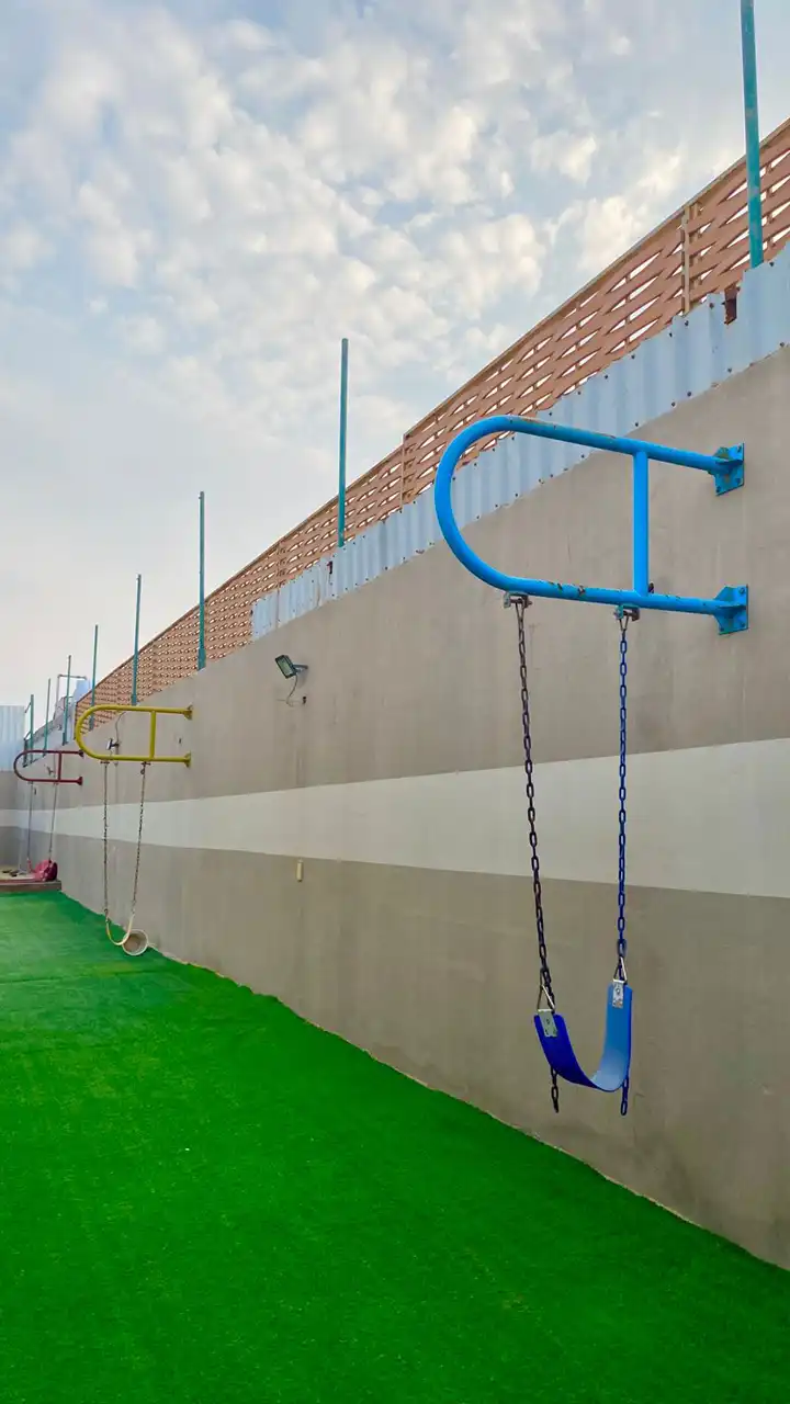 استمتع بالأجواء الشتوية في خيمة وجلسة خارجية مريحة، مع مساحة مخصصة للعب الأطفال، ومطبخ صغير، ودورة مياه، ومراجيح، ومسطح أخضر واسع، مثالي للجمعات الشتوية واللحظات الدافئة مع العائلة والأصدقاء، يتم تفعيل هذه المنطقة خلال فصل الشتاء فقط.